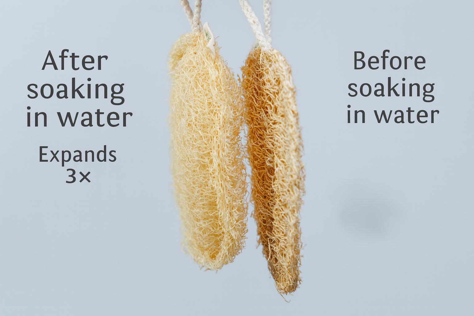 Rinse them in warm water before use and the loofah will unfold in your hand. Add liquid soap or rub onto a block soap to lather sponge.