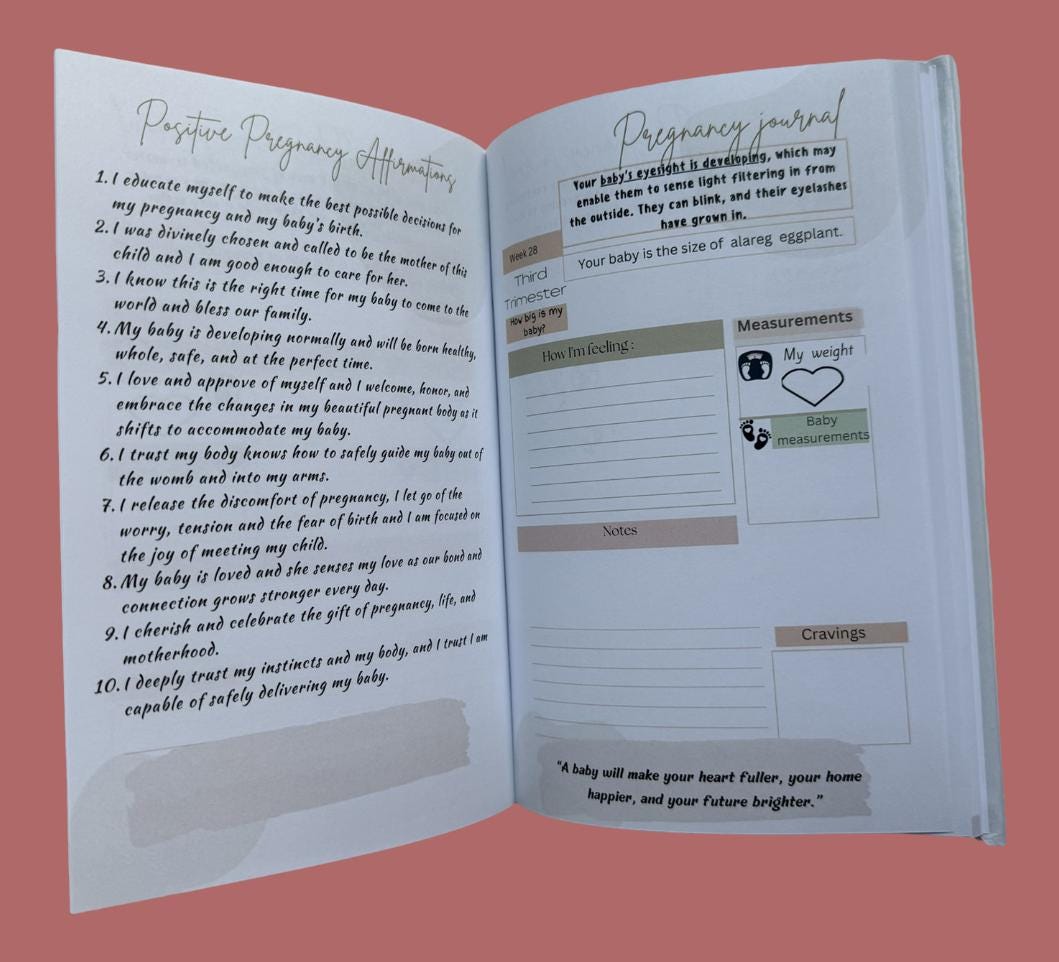 This is more than just a journal; it's a keepsake filled with love, positivity, and the joy of new beginnings. With its elegant design and practical features, this journal makes for a perfect gift for expectant mothers, providing a timeless memento of this special chapter in their lives.